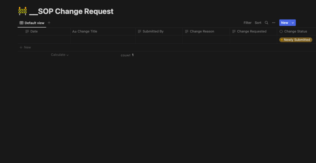Notion Standard Operating Procedure (SOP) Change Request Database (Add-On)